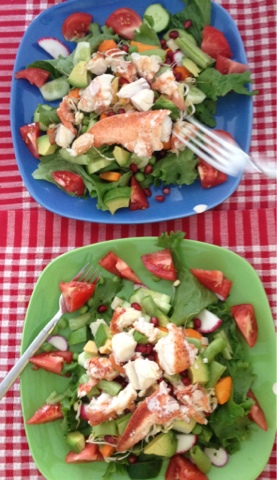 Oh how I've missed my weekly Saturday lobster salad. Everything on the plate (except the avocado and pomegranate seeds) is from the Union Square GreenMarket.
